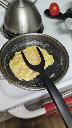 Spatula multifuncțională oferă un control precis și o prindere sigură, astfel încât să poți întoarce ouăle și clătitele fără a le deteriora. Bucură-te de gătit fără stres, știind că alimentele tale sunt în siguranță.